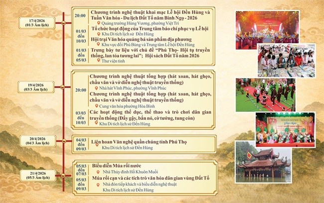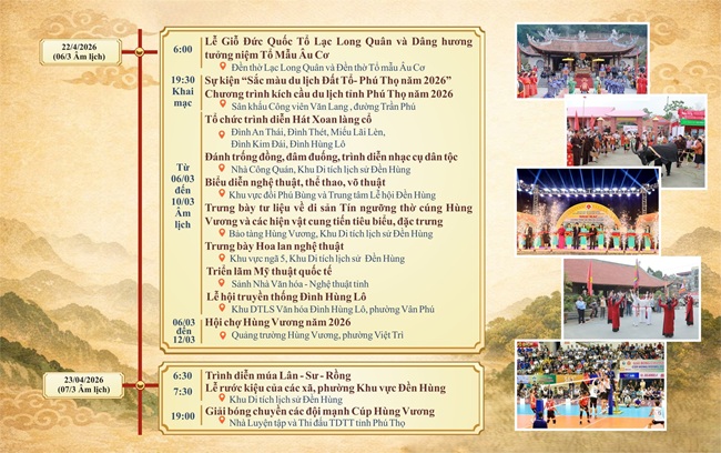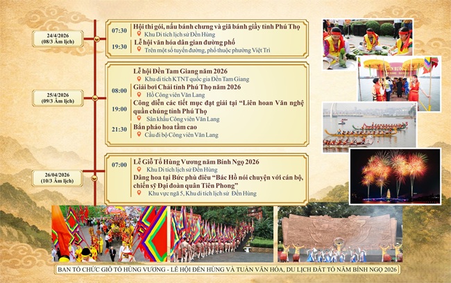 Chương trình tổ chức Giỗ Tổ Đền Hùng - Lễ hội Đền Hùng và tuần Văn hóa, Du lịch Đất Tổ năm Bính Ngọ 2026