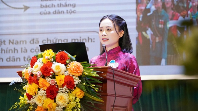 (Đồng chí Phạm Thị Minh Thùy - Phó Chánh Văn phòng Đảng bộ Trường Đại học Hùng Vương đạt giải Nhì tại Hội thi)